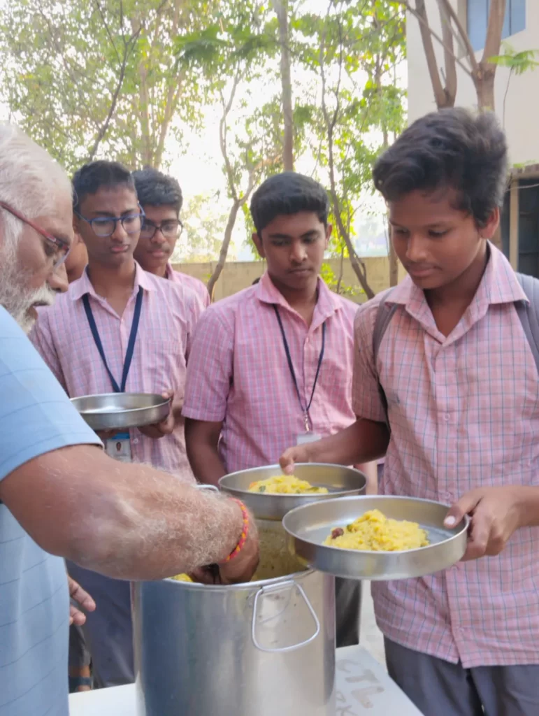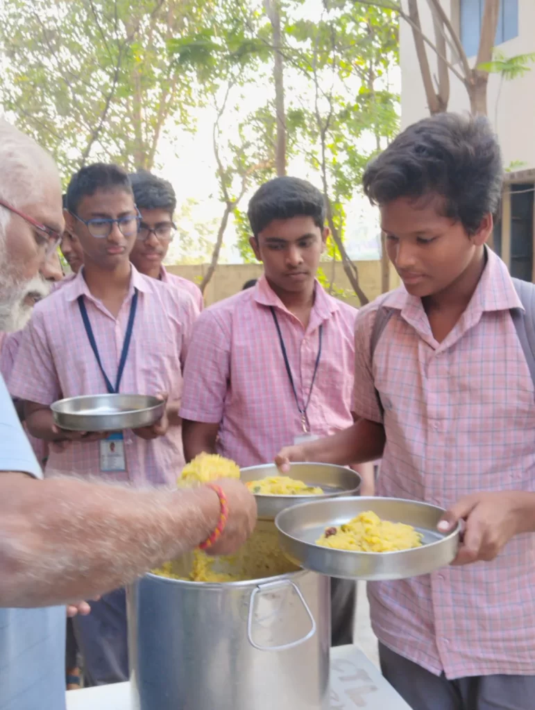 It is informed that, to day (20.2.23 – Monday – 14th day) Sree Dharma Sastha Ayyappan Yogam public charitableTrust distribute the food(Brinji rice and onion raitha) to the chittlapakkam Government school Students those who are appearing for the 10th Std., Government public Examinations in the special class.during the evening late hours. Totally 30 students were benefitted.
